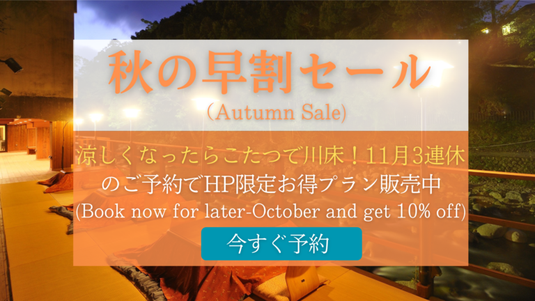 川床で旬の味覚を楽しみ、 湯に癒され、 静かな夜に身をゆだねる。