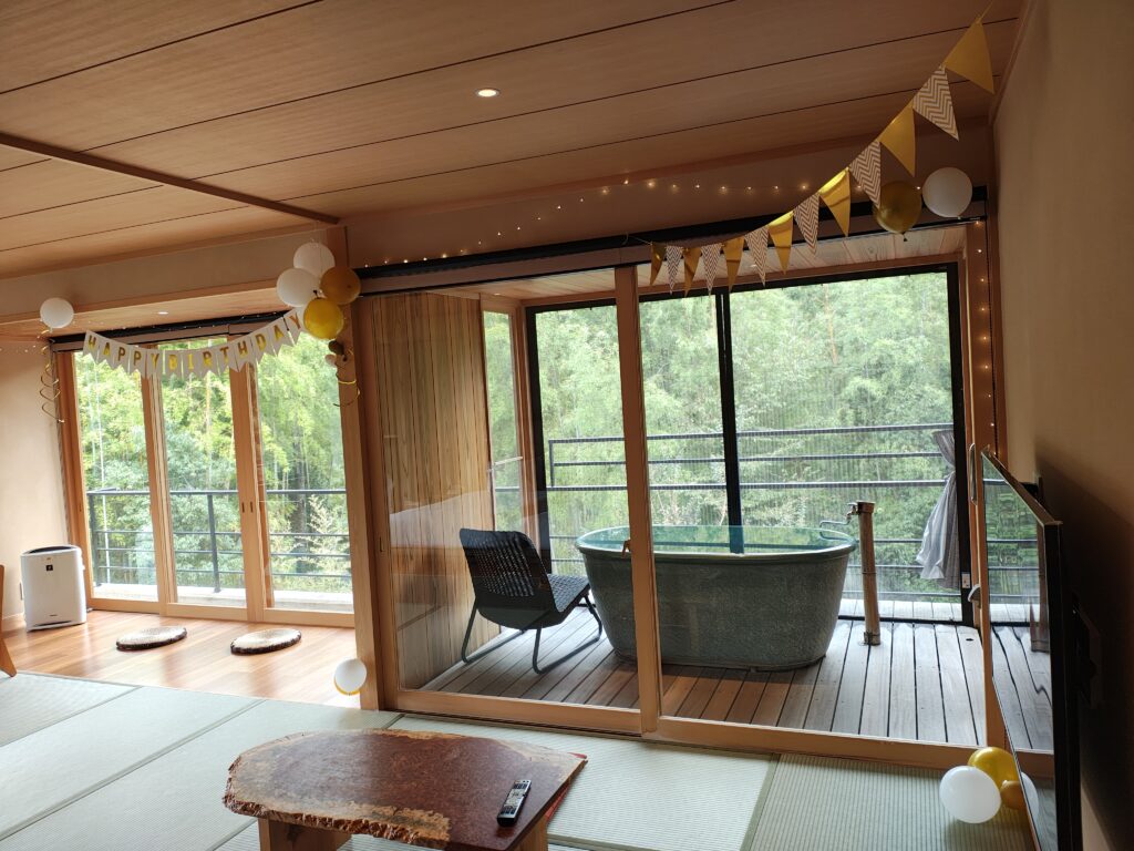 竹林を望む露天風呂付客室「竹の音」限定で、大切な一日を上品に演出いたします。